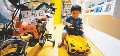 一位小朋友在某租赁平台线下体验区试玩新玩具。人民视觉