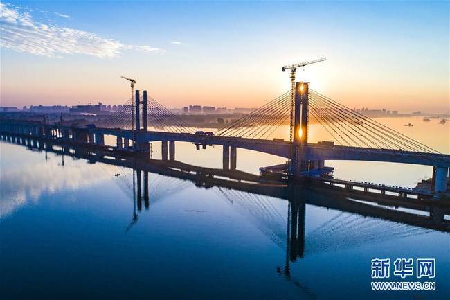 这是8月20日航拍的蒙华铁路汉江特大桥。新华社发(金伟摄)