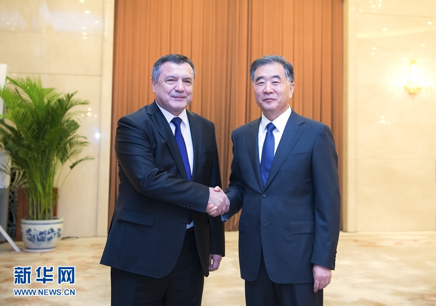 汪洋会见乌兹别克斯坦最高会议立法院主席伊斯梅洛夫