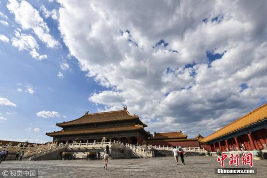 2018年9月7日,在北京秋日碧天云海的映衬下,故宫尽显古韵之美,这座古老皇家建筑在云海下显得无比庄严。 图片来源:视觉中国