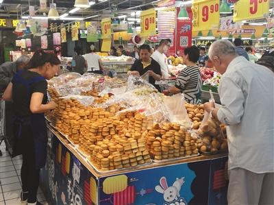 9月22日,马家堡西路的一家超市内,市民在散装区选购月饼。新京报记者 周依 摄