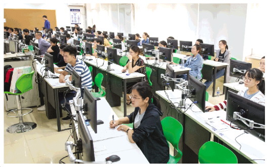 9月22日,首次国家统一法律职业资格考试正式举行。今年是建立施行国家统一法律职业资格考试制度的第一年,也是组织实施法律职业资格考试的开局之年、实施全面机考的首考之年。图为对外经济贸易大学考点,参加2018年国家统一法律职业资格考试的考生正在认真答题。本报记者 王建军 摄
