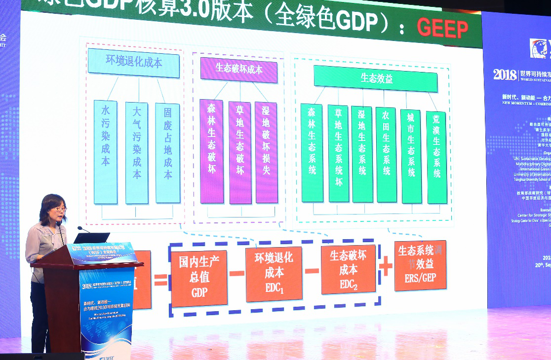 国家生态环境规划研究院环境经济核算研究中心主任於方研究员代表中国工程院院士、国家生态环境部环境规划院院长王金南,报告了“绿色GDP3.0版本:经济生态生产总值GEEP”的可持续发展研究成果。
