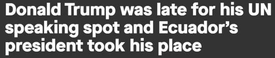 这个“坏消息”事发于25日上午联合国大会第73届会议一般性辩论期间,按照会议日程,特朗普本该第二个发言,但是,他迟到了。