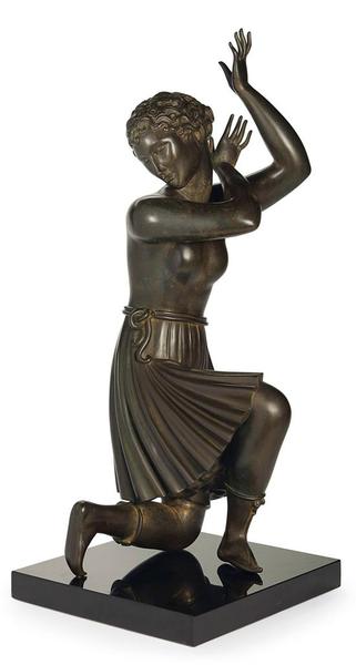 埃利?纳德尔文(Elie Nadelman)(1882-1946年),《舞者》,约1916-17年作。铜雕 棕色铜锈。高29?吋(74.9公分),底座高1?吋(3.8公分)。此拍品于2018年11月在佳士得纽约‘美国之地:巴尼?艾伯斯渥斯珍藏’晚间拍卖中呈献。