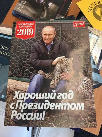 综合美联社、香港“东网”报道,普京2019年的写真日历中,“秀肌肉”的照片当然是必不可少,普京练习射击、玩冰上曲棍球的照片也被选用。除了展现“硬汉”形象,还有普京手抱小动物这样的温情照片。此外,也少不了他参加2018年俄罗斯世界杯活动的照片。有的日历上还附有普京说过的名言,“我崇拜俄罗斯女性”。