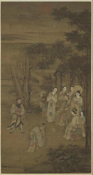 人物画方面,有历史神话故事,如宋陈居中《文姬归汉图轴》、宋马麟《三官出巡图》、宋人《却坐图》、宋人《折槛图》等;还有宋代帝后像,如《宋太祖坐像》、《宋仁宗后坐像》、《宋宁宗后坐像》等?!独恰房此怠胺蚧叱山袒?,助人伦,穷神变测幽微,与六籍同功,四时并运?!闭庑┤宋锘蠖际卿秩菊谓袒纳?。
