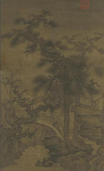 夏珪的《溪山清远卷》可以说是代表了整个南宋山水画,“水墨氤氲、构图空灵”既展现了南宋的山水画特点与审美趣味,又映证了“夏半边”的经典图式。而这种一角山水的形成,除了自然环境、政治因素的影响之外,离不开画家的一脉相承。这中间至关重要的人物就是李唐,而萧照就是李唐的学生。李霖灿先生认为,萧照的《山腰楼观图轴》轴看似不起眼,但是它继承了李唐《万壑松风图》的笔法,更重要的是这幅画在章法上有了新的改变。即画面的主体由北宋以来中央式的全景构图中慢慢偏移到画面左边边沿,摇身一变成为了开启南宋“边角式”的代表。