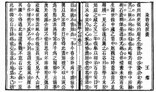 王鉴到常熟或者说王翚在常熟见到了王鉴,这是王翚绘画人生的转折点,等于一脚踏上了天梯。王翚出示的一个扇面小景,令当时名重画坛的王鉴反复把玩并赞叹不已,最后竟“携之袖中”。当晚朋友盛宴王鉴,可王鉴的注意力不在几十位宾客,也不在笙歌骈集的热闹场面,他完全被王翚的扇面陶醉了,“握余扇注视不释手,酒半示遍诸客,称许过当,一座皆惊?!?/p>