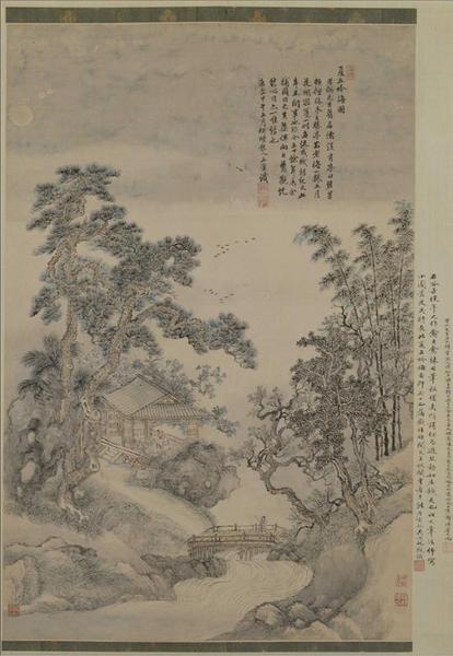 平心而论,二十岁的王翚,已具非凡的仿古功力了。彼时他至少有十年的画龄,而这十年与之朝夕相处的便是古画。其实,在传统画作里打基础,是天经地义的,好比学写文章,除了熟读古文,不存在第二条路径。中国古代文人没有不饱读诗书的。而中国古代画家,也没有不从古画中脱颖的。王翚的学画,可能未曾想到过日后的辉煌。他家三代善画,都平庸无奇,他继承家业,期望在仿古上有所作为。他拜乡先辈张珂为师,便是处于仿古的意愿。