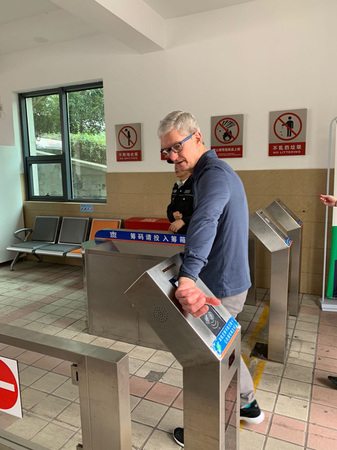 原标题:苹果CEO库克上海乘轮渡:用苹果手表刷公交卡过闸机