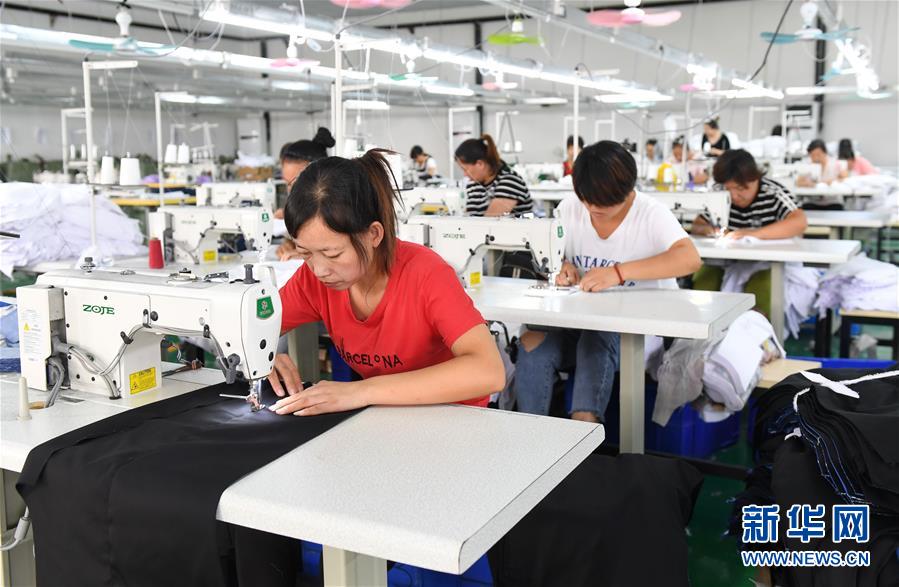 工人在河北省巨鹿县小吕寨镇西大韩村“就业扶贫车间”内加工服装(9月11日摄)。 新华社记者牟宇摄
