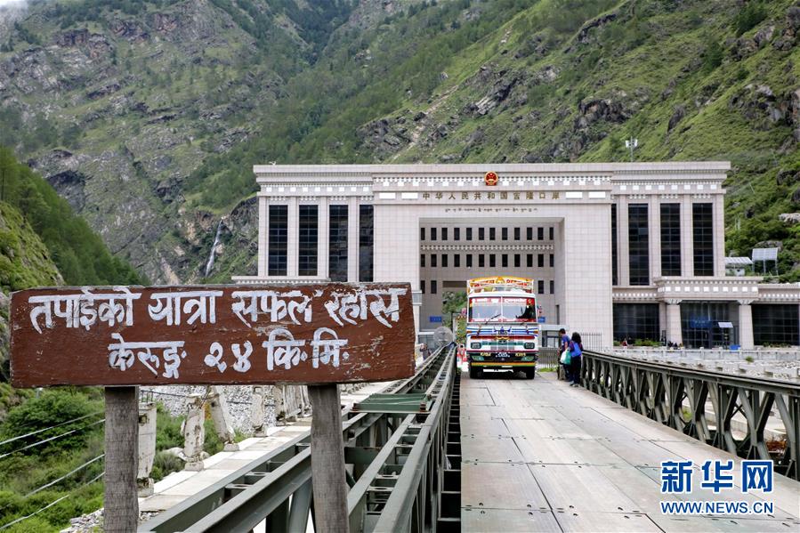 尼泊尔货车通过中尼边境的吉隆口岸(8月4日摄)。新华社记者 刘芳 摄