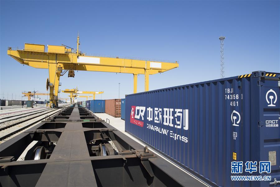停靠在霍尔果斯铁路口岸的中欧班列(7月27日摄)。新华社记者 琚振华 摄