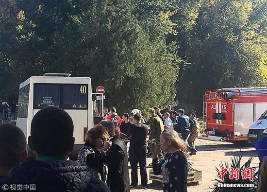 当地时间10月17日,俄罗斯克里米亚东部刻赤技术学校内发生剧烈爆炸,已致至少13死50伤。爆炸发生后,救援人员即刻赶到现场,目前受伤人员已被送往医院。据报道,俄调查人员表示,当天发生在克里米亚的爆炸疑似为恐怖袭击。图片来源:视觉中国1