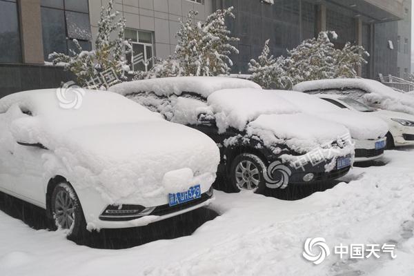 昨天上午,新疆乌鲁木齐天山区积雪将车辆覆盖。(图 叶春雷)
