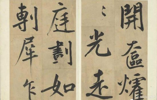 黄庭坚作为苏轼的学生,其早期书法作品受苏东坡影响较大,及至中年,黄庭坚从《瘗鹤铭》中得到灵感,在书风上逐渐与苏轼“分道扬镳”,并形成“中宫紧缩,四周伸展”的辐射式书体,成为宋代最富个性的书家之一。