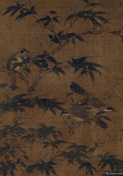 《翠竹翎毛图》是宋代画作,用写生的手法表现了初冬飘雪,稚鸡、麻雀,或蜷缩,或展翅的景象。据古气象学家的研究,北宋晚期,中国正好处于“寒冷期”,气候寒冷。所以,北宋晚期,表现冬季、雪景的绘画特别多。由此可见此画幅对生态有着深刻的观察和了解,是一幅形神皆兼的写实作品。