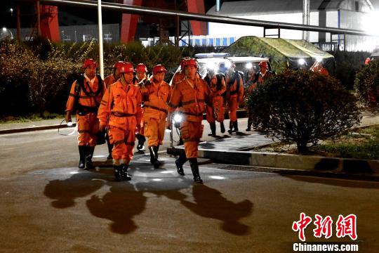 消防救援队伍在山东龙郓煤业冲击地压事故现场紧张救援?!×籂?摄