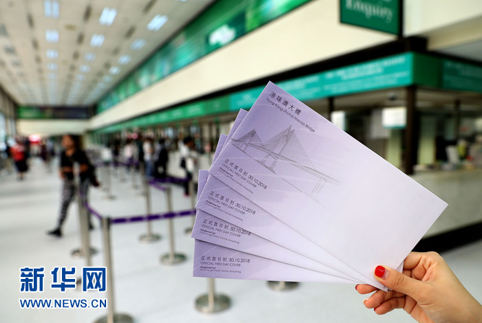 新华社香港10月23日电(记者丁梓懿)港珠澳大桥开通仪式23日举行。香港邮政当日开始发售“港珠澳大桥”特别邮票的正式首日封,每个售价1.3港元。当天,吸引不少市民前往邮局购买。