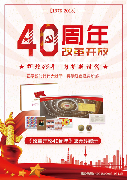 《改革开放四十周年》邮票珍藏册,将在全国9大省市近20家门店同步预售。届时,可下载“邮来邮网”APP、微信搜索“邮来邮网”小程序在线购买,详情拨打“4001810066”专属服务热线或“95135”全国24小时客服热线咨询,或关注邮来邮网官方微博及微信公众平台了解更多资讯。