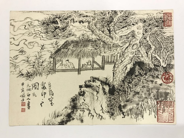 展览中,六大家的作品数量以陆俨少作品为最多,且无论是其册页作品、立轴作品,还是手卷作品,无不体现了以元人笔墨写造化之境的山水画精髓。尤其是《峡江险水图卷》,此卷前有林散之题,后有商承祚跋,是陆俨少1966年写貌三峡之作。众所周知,1945年陆俨少自巴蜀之地举家东归,由于火车票、飞机票紧张,画家携全家搭乘民工之木筏顺江而下,一路虽惊险,但得幸一睹三峡之奇特面貌,故而返沪之后,陆俨少屡写峡江险水图。此卷便是其一?;碇凶允贾廖?,俨然一气呵成,群峰高耸,江水急湍,在画家顺势而为的笔墨之下,表现得淋漓尽致。除了此卷,《豆庐室治印图册》、《峡江图》、《采药图》也是体悟陆俨少对传统笔墨继承与发扬的极好范本。