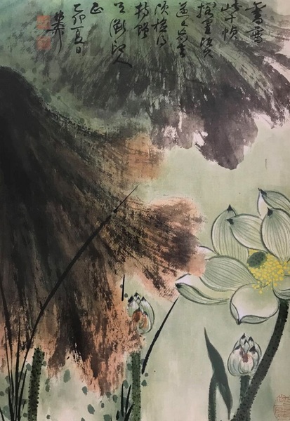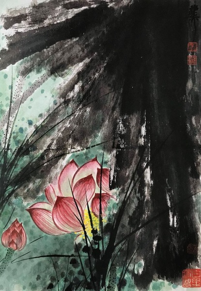 《彩墨荷花图》十开之一