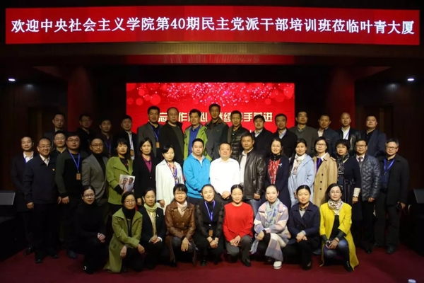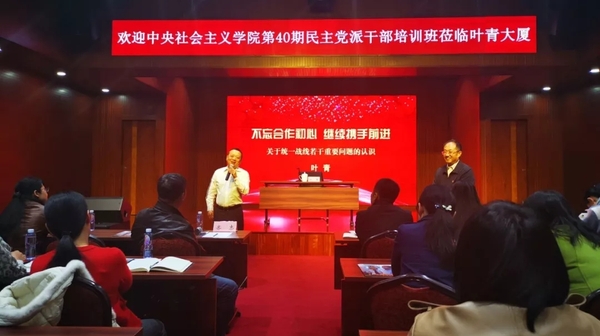 10月29日,中央社会主义学院组织第40期民主党派干部培训班学员赴北京市叶青大厦进行“政党制度”教学??榈氖导萄?。本次实践教学的主题是“不忘合作初心,继续携手前进”。全国政协常委、全国工商联副主席、叶氏集团董事长叶青为学员们授课并进行现场交流。