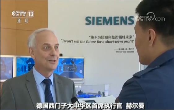 德国西门子大中华区首席执行官赫尔曼:“首届进口博览会是中国持续开放的标志性举措,在历史上前所未有/我们看到了中国发展过程中的新机遇,我们想在数字化方面参与贡献力量,不仅仅局限于制造业,更希望在基础设施和其他领域打开市场。”