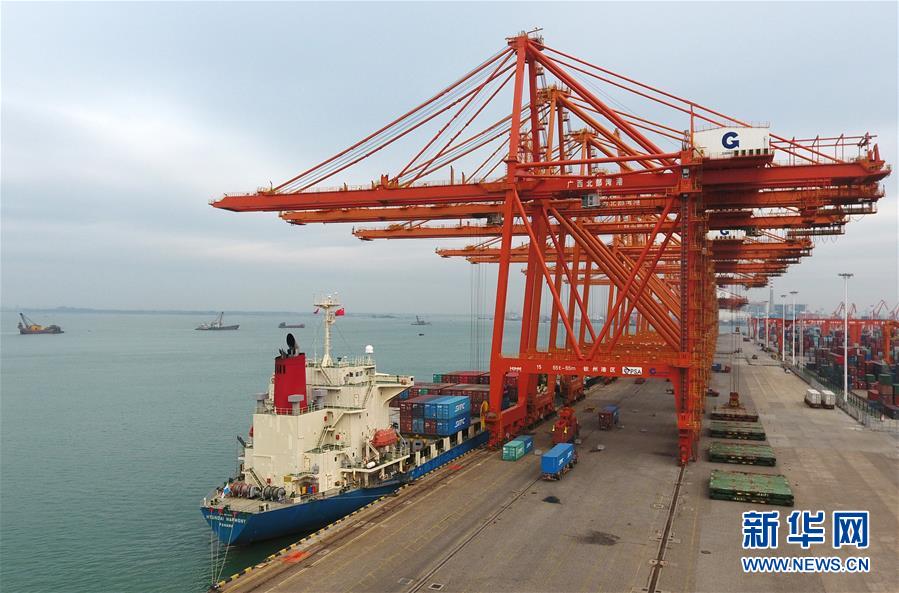 这是正在作业的广西钦州港(1月10日无人机拍摄)。新华社记者 陆波岸 摄