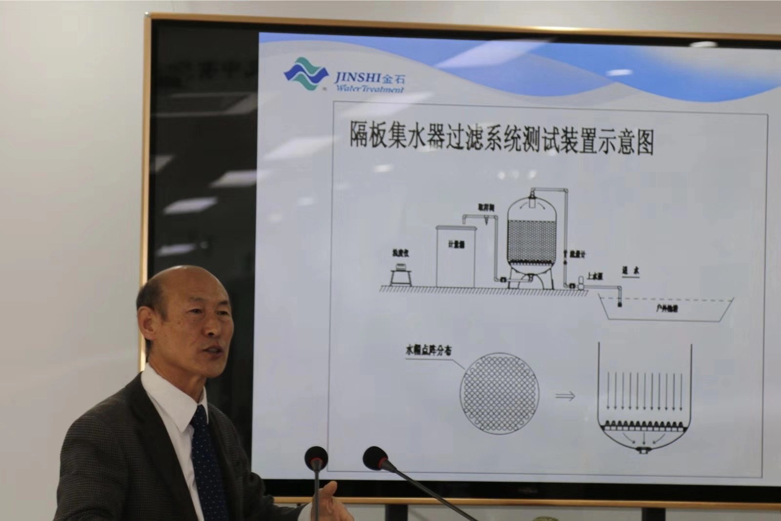 在座谈会之后,举行了“廊坊金石佳业水处理设备制造有限公司——水处理过滤装置及工艺技术评审会”。中国技术市场协会副秘书长王兵主持了评审会活动。评审专家组组长、环境?;げ炕肪彻こ唐拦乐行母弊芄こ淌θ尉懊?、机械工业环保产业发展中心原主任赵强、中国科学技术发展战略研究院农村与区域发展研究所所长王书华、清华大学环境学院副总工程师王永军、中国技术市场协会秘书长许爱东等五位组成了评审专家组。专家组对水处理过滤装置及工艺技术——内置滤水隔板压力罐、速溶可控盐耗溶盐桶、高效低耗软化水设备技术创新进行了严肃而认真的评审。评审会通过申报单位技术创新阐述、专家质询、专家评议、专家出具评审意见等流程展开。评审会取得圆满成功。