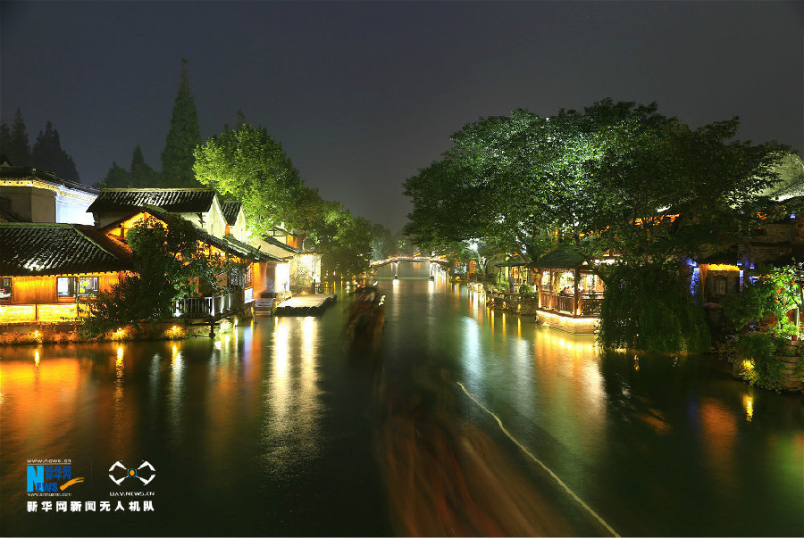 梦里的江南水乡,小桥流水,粉墙黛瓦,桨声灯影,枕水人家……乌镇,这座千年的古镇,即将迎来一场盛会——第五届世界互联网大会,一场古典与现代的碰撞将再度展开。鸟瞰乌镇,古色古香,如诗如画。新华网毛嘉炜摄