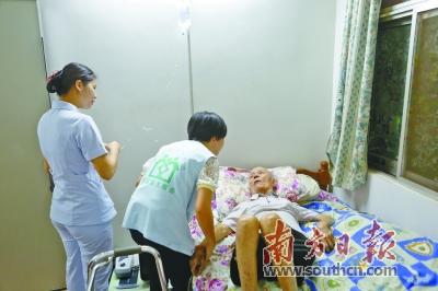 “陈伯,我是陈医生,你有没有不舒服?我们现在要先帮你冲一下尿管,好不好?”黄贝岭养护中心全科护士陈小丹在进行一系列检查前的贴心问询,让患有白内障的陈伯知晓了为他服务的医生是谁、接下来要做什么检查。这是南方日报记者近日跟随罗湖区家庭医生“走家床”所见到的居家养老上门服务场景。