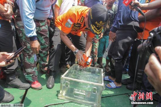 当地时间11月1日,印尼狮航失事客机第一个黑匣子被打捞出水。