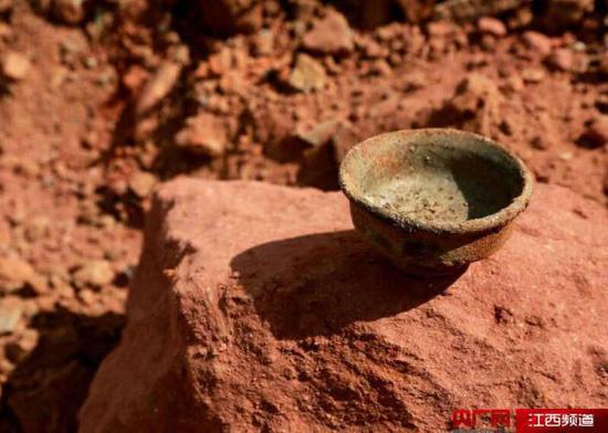 在横峰窑址大道施工过程中,施工人员在红色的砂土中发现带状散布着大量的兴安窑瓷器,主要是生活用的盏、碗等器物和烧窑用的相关物件。目前,该县文化部门技术人员正在对窑场进行?;ば酝诰蛘?。