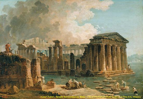 《被水环绕的神殿》(Temple Surrounded by Water) 于贝·霍贝(Hubert Robert ) 1780