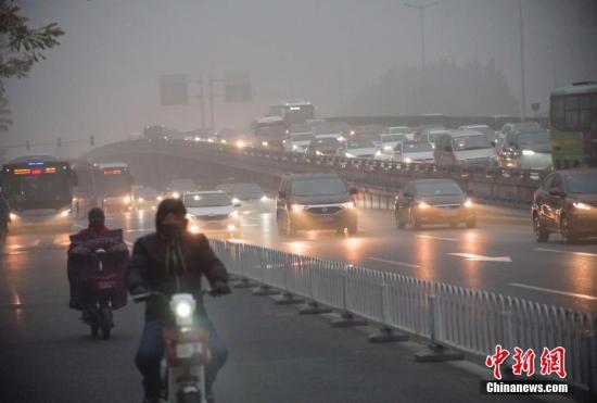 11月14日,北京再度遭遇区域污染天气过程,官方发布空气重污染黄色预警和大雾黄色预警。 中新社记者 贾天勇 摄