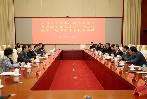 2018年11月11日至12日,全国人大常委会委员、农工党中央专职副主席龚建明一行赴天津就自身建设等问题进行调研。农工党中央组织部副部长邓蓉玲参加调研。期间,中共天津市委会常委、统战部部长冀国强,统战部副部长唐瑞生会见了龚建明一行。农工党天津市委会专职副主委王毅斋陪同调研。