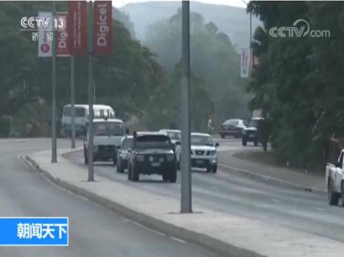 央视记者 骆魏:这条全长约为1.06公里的独立大道工程,连接了巴新的议会大厦和首都地区的主干道,双向6车道,如果算上两边人行道的距离的话,总宽度约为32米,是目前为止,巴新全国技术标准最高的一条城市道路。