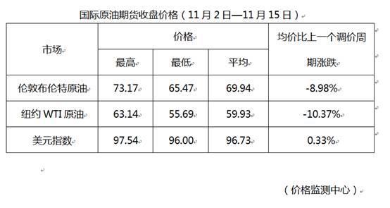 受沙特增产、美国原油库存超预期增长、美国放宽对伊朗制裁、需求预期下滑等一系列因素影响,国际油价大幅下降。目前布伦特、WTI油价分别降至每桶66美元和56美元,较十月初的四年高位下降约20美元,降幅达23%、26%。