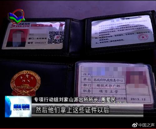 李秋田表示:“经过初步审查以后,他的这个身份是中共中央政研室工作站驻山西工作站,他这个身份是假的,而且这个证件也是自己来做的。他相跟的一个同伙刘某,身份是山西一家新闻网站农村频道的记者,他的这个记者证,他的这个身份也是假的。通过后期调查他的身份,他就不在那上班,单位就没有这个人?!?/p>