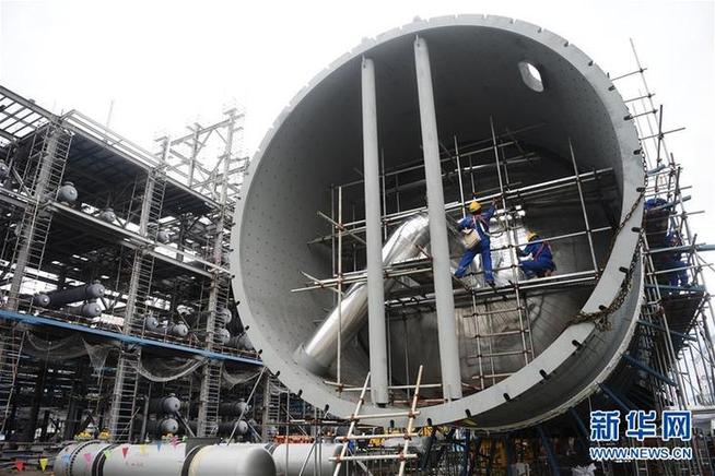 记者在施工现场看到,占地375公顷的项目一期工程已见雏形。原油储存罐和液化石油气球型罐整齐排列,各类管道穿行在厂区各处,配套的发电厂、自来水厂和污水处理厂也接近完工。