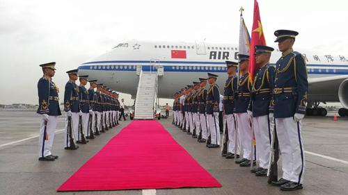 △礼兵在红毯旁列队,准备欢送习近平主席。(央视记者李铮拍摄)