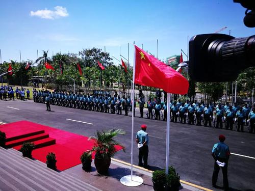 △巴新的欢迎仪式在议会大厦前广场举行。(央视记者张晓鹏拍摄)