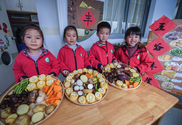 在小雪节气即将到来前,浙江省长兴县李家巷镇中心幼儿园的孩子们在老师的带领下,用大米、糯米、玉米、南瓜、赤豆、咸鸭蛋等农产品亲手制作竹筒饭、八宝糕、糯米团、糖葫芦等,让孩子们在制作传统美食的过程中了解节气文化,在欢乐的气氛中迎接小雪节气的到来。