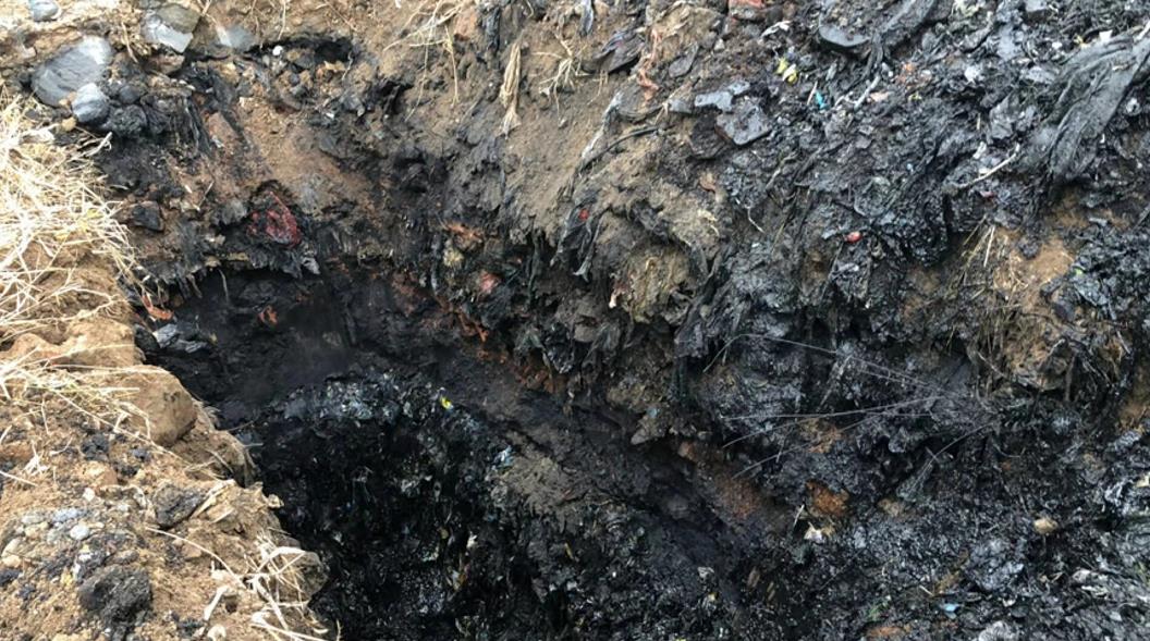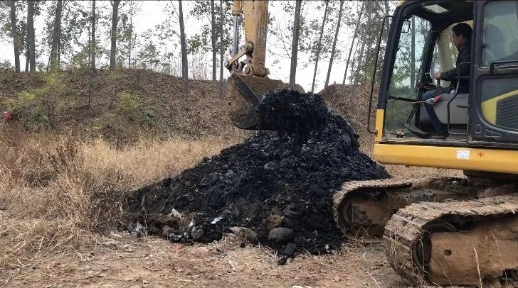 督察发现,该非法填埋场长400余米,宽约60米,深度在10米以上,填埋量达20万立方米左右,不仅填埋了大量生活垃圾,还混杂填埋医疗废物和工业危险废物。2018年11月15日,督察组随机选取7个点位进行挖掘,发现填埋物多呈黑褐色,并伴有强烈刺鼻气味。经专业机构取样鉴别,因生活垃圾与危险废物混杂填埋,填埋的废物均具有危险废物特性。