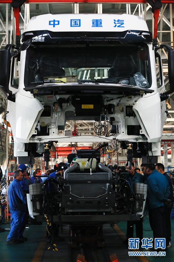 工人在中国重汽集团济宁商用车总装生产线上装配汽车(11月22日摄)。 新华社发(李明放 摄)