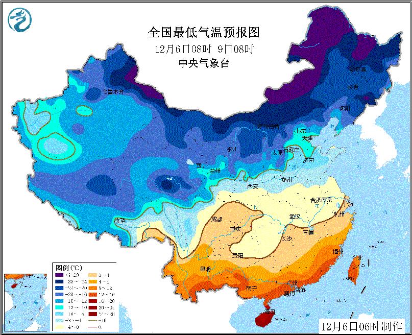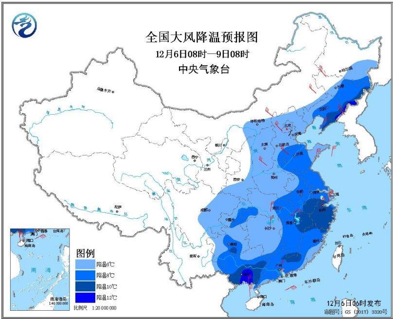中央气象台12月6日6时继续发布寒潮蓝色预警。