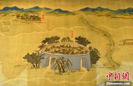 图为《丝路山水地图》局部:黑楼城(今阿富汗赫拉特),也是该地图中唯一的圆形城墙。