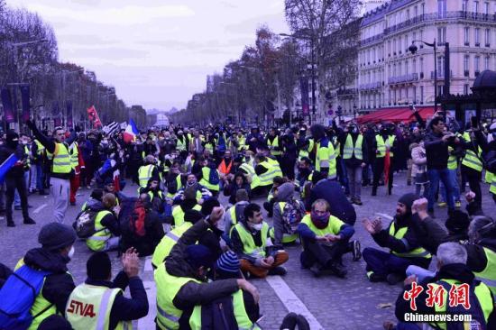 图为示威者在香榭丽舍大街聚集。中新社记者 李洋 摄